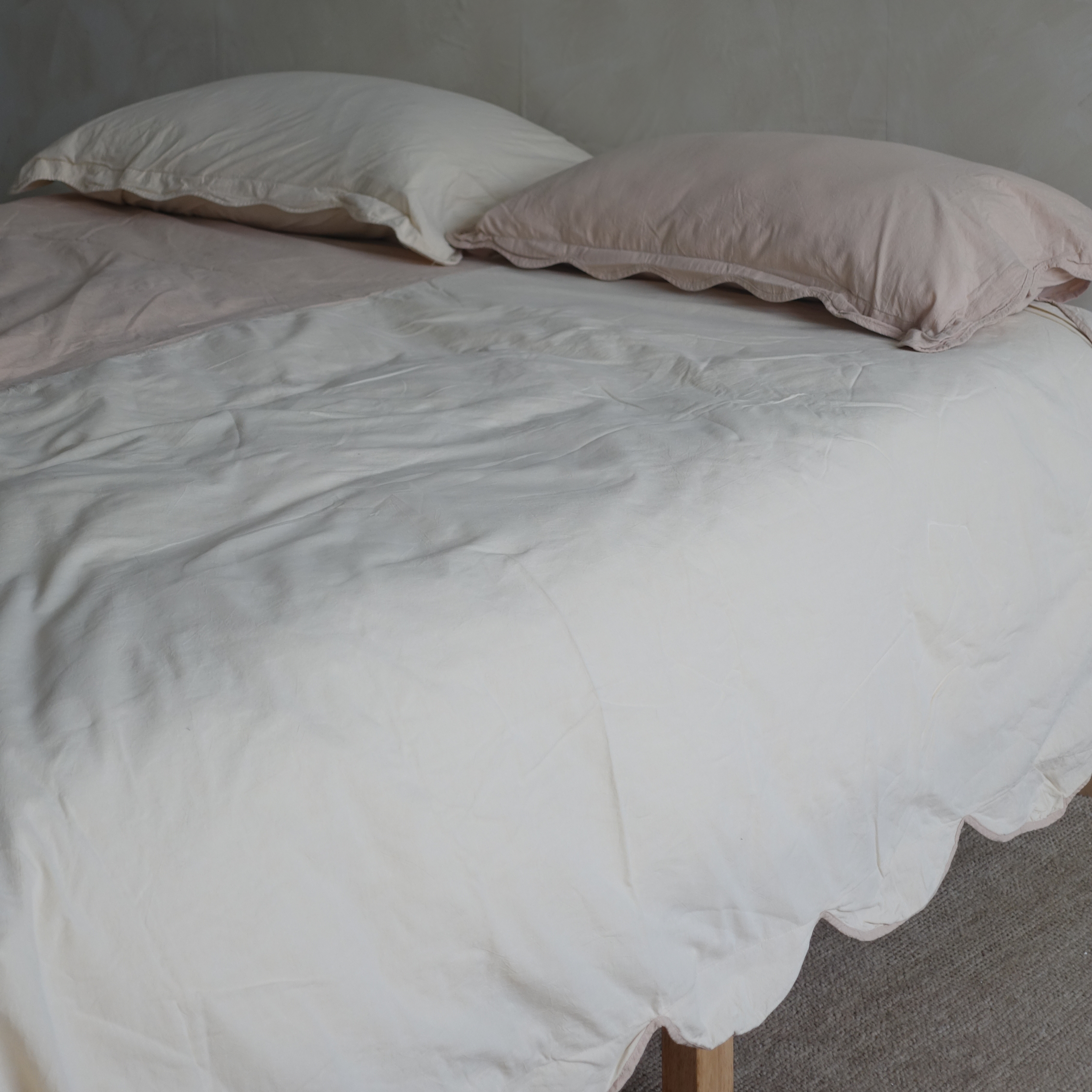 Sleep in something worse passing down. We designed our 100% cotton duvet sets to be the perfect balance of comfort and versatility- soft, breathable, and effortlessly sophisticated. Crafted for year-round use, it offers a lightweight yet cozy feel, while the organic cotton ensures a soft, lived-in texture that gets even better with time. Finished with large, scalloped edges, this duvet brings a touch of elegance and artistry to any bedroom, making it just as beautiful as it is functional. Unlike ordinary bedding, this collection was designed with both style and longevity in mind. Made from 100% organic fabrics, certified by OEKO-TEX® and GOTS, it’s crafted for those who need more than just comfort- it’s designed with sensitivities in mind.