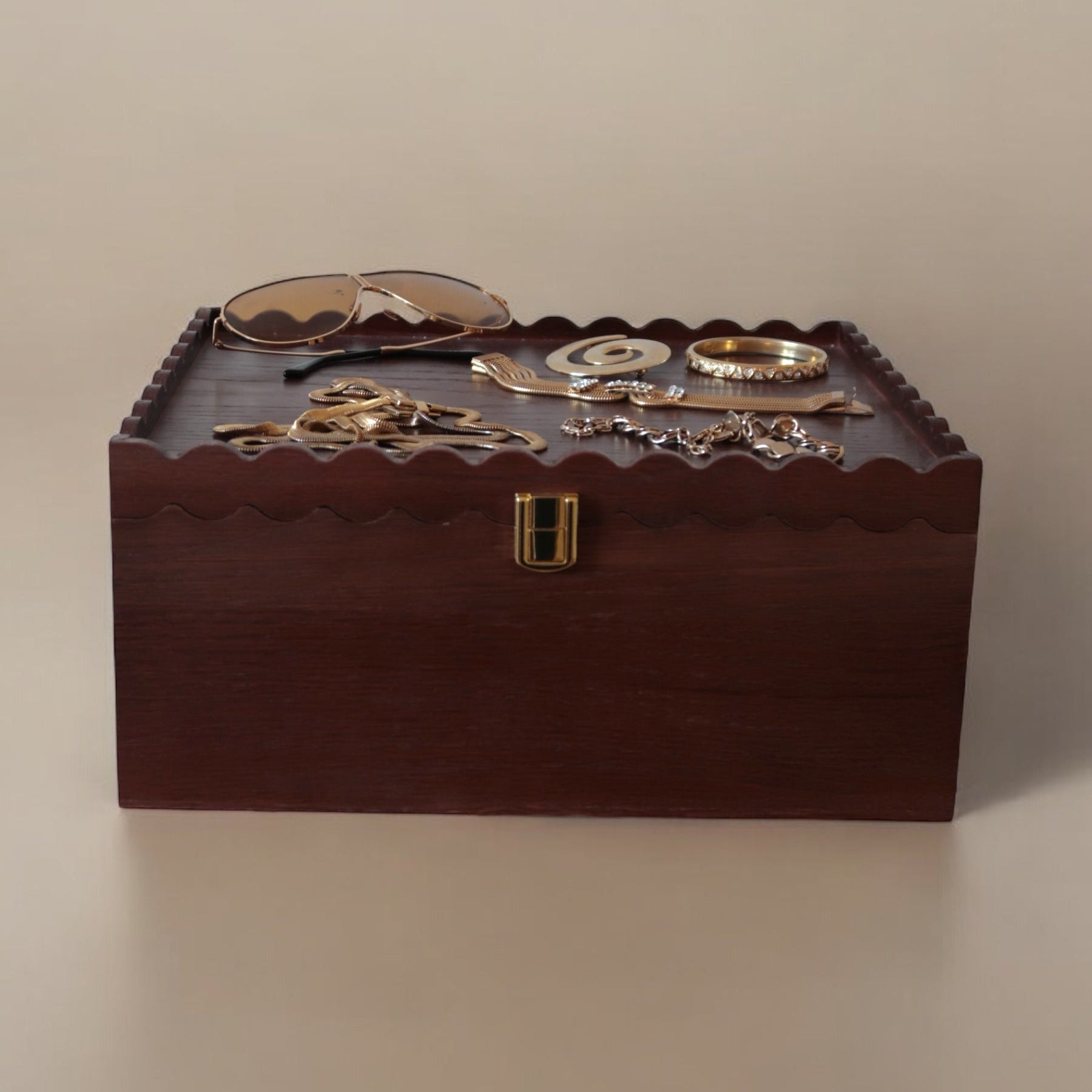 - Intricate wood-carved, scalloped details on the lid and box for timeless appeal