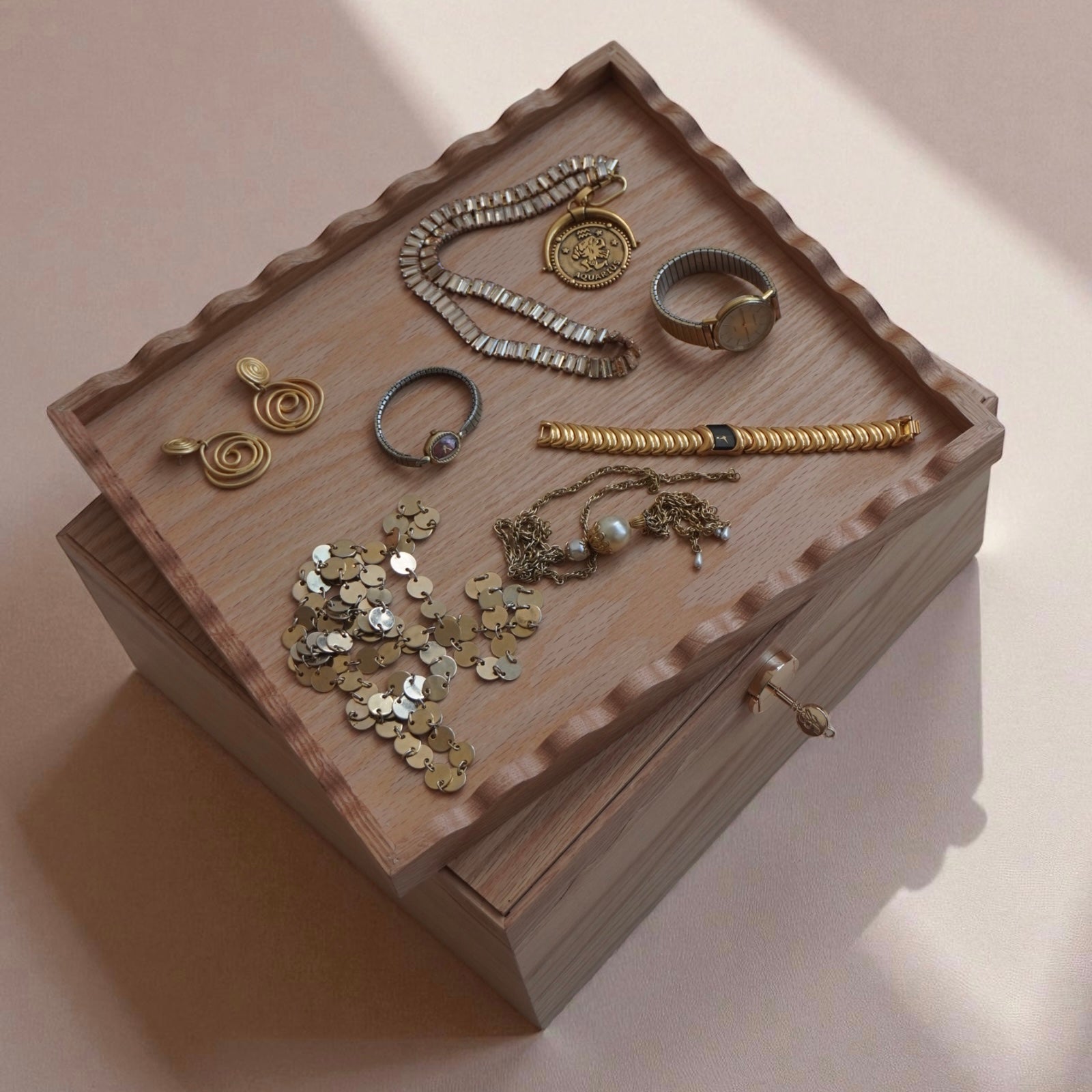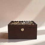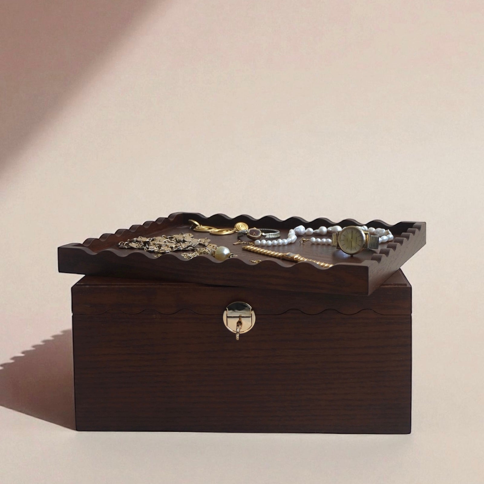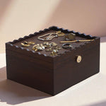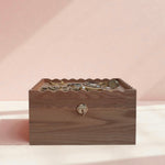 - Intricate wood-carved, scalloped details on the lid and box for timeless appeal