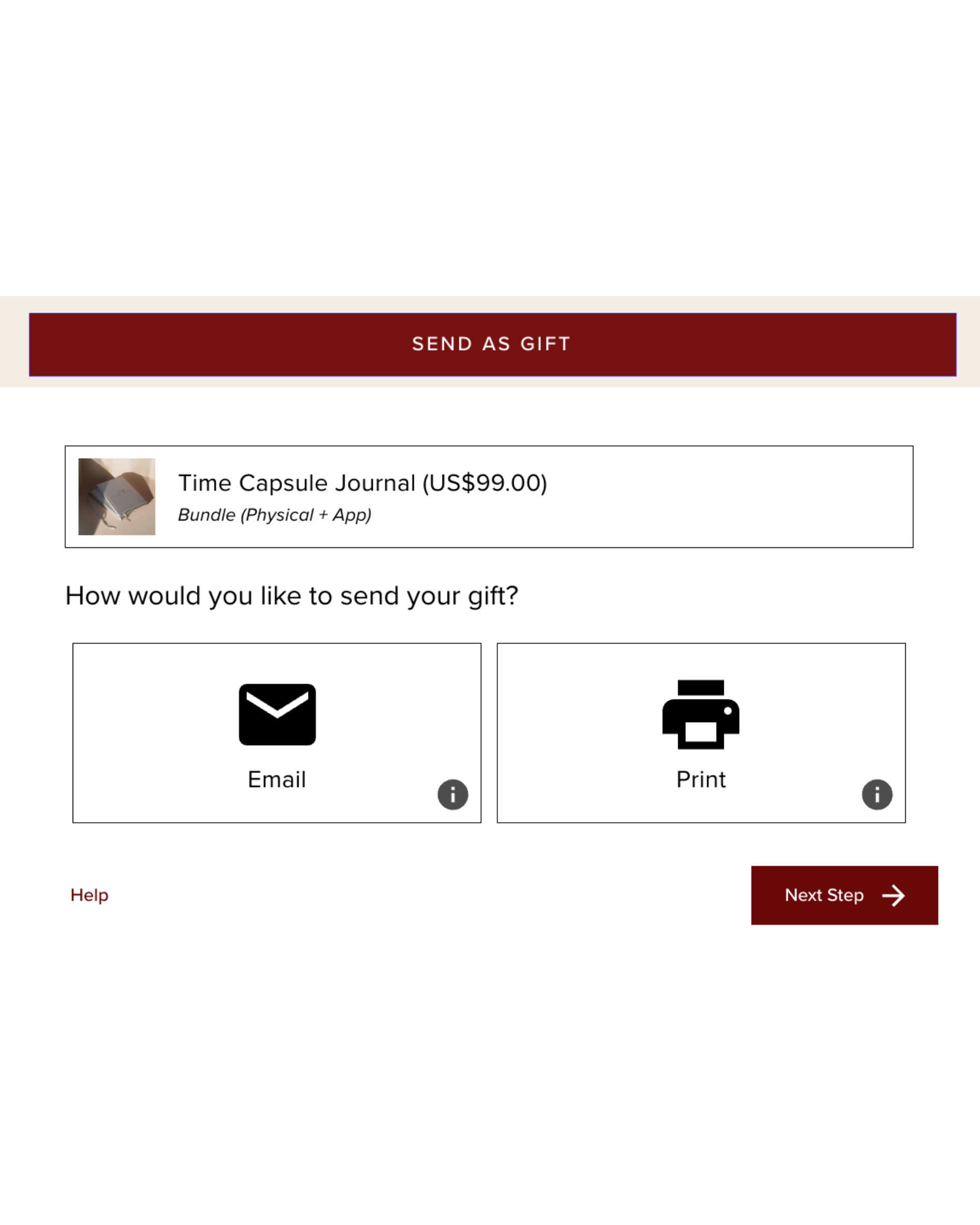 Pick between the Physical Journal, the Digital App, or the Bundle on the product page. At checkout, decide how you want the gift delivered- you can email it to your recipient right away, schedule it for a later date, or have it sent to yourself first so you can give it on your own time. You can also attach a custom message, GIF, or a video note (video currently works on mobile only!)
