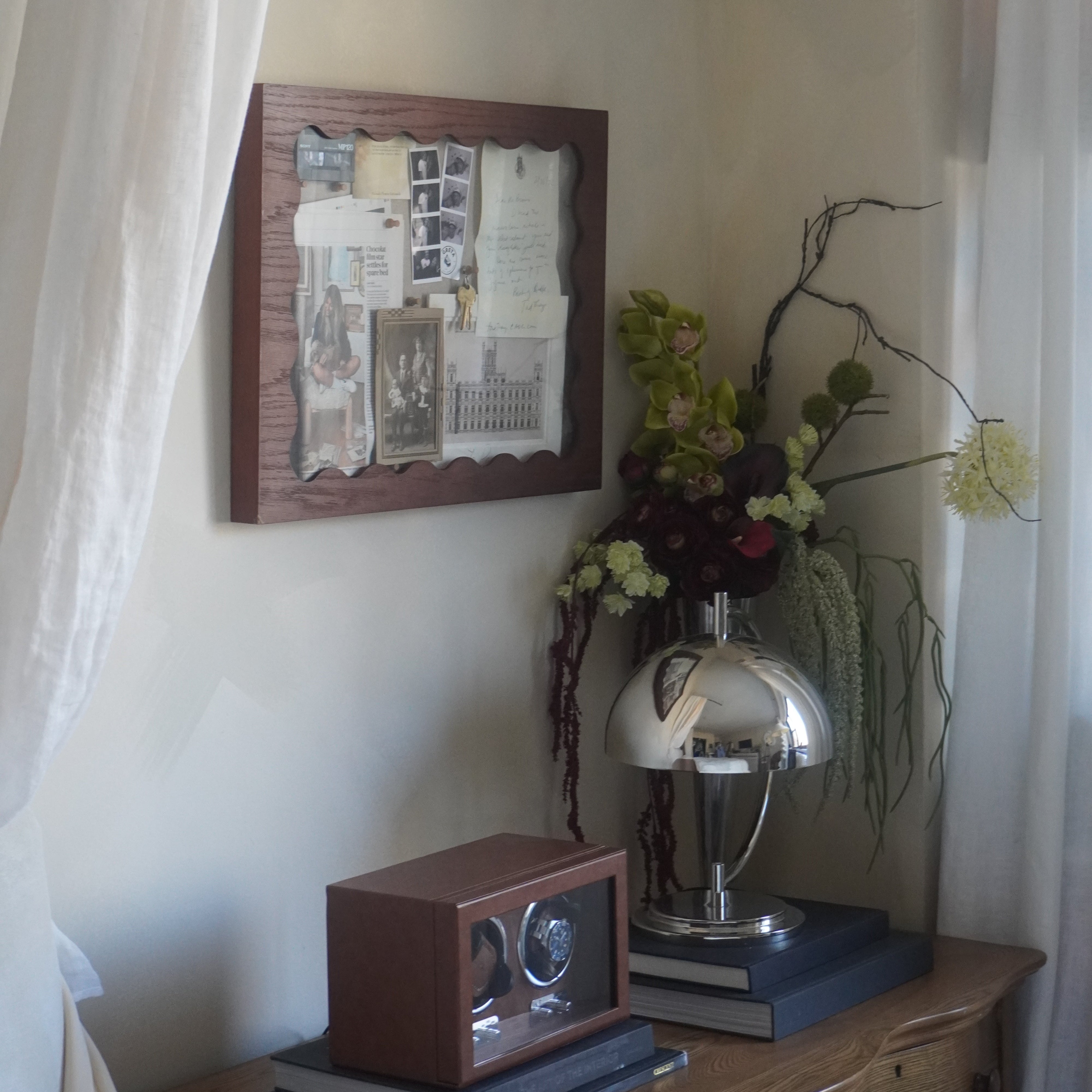 TIP: Use push pins or slim T-pins for secure mounting. For flat items like letters or ribbons, acid-free double-sided tape works beautifully. The linen-cork interior is built to hold memories without damaging what matters most.